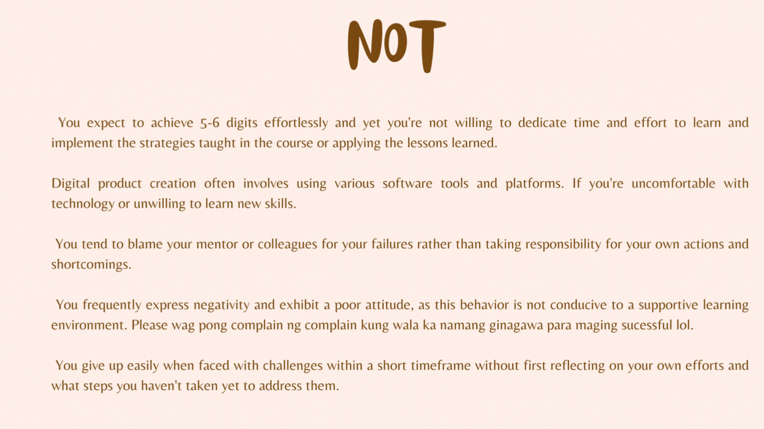 BAWAL PO DITO ANG TAMAD! You will become successful in Digital Business if i-aapply mo sa sarili mo ang matutunan mo sa course.